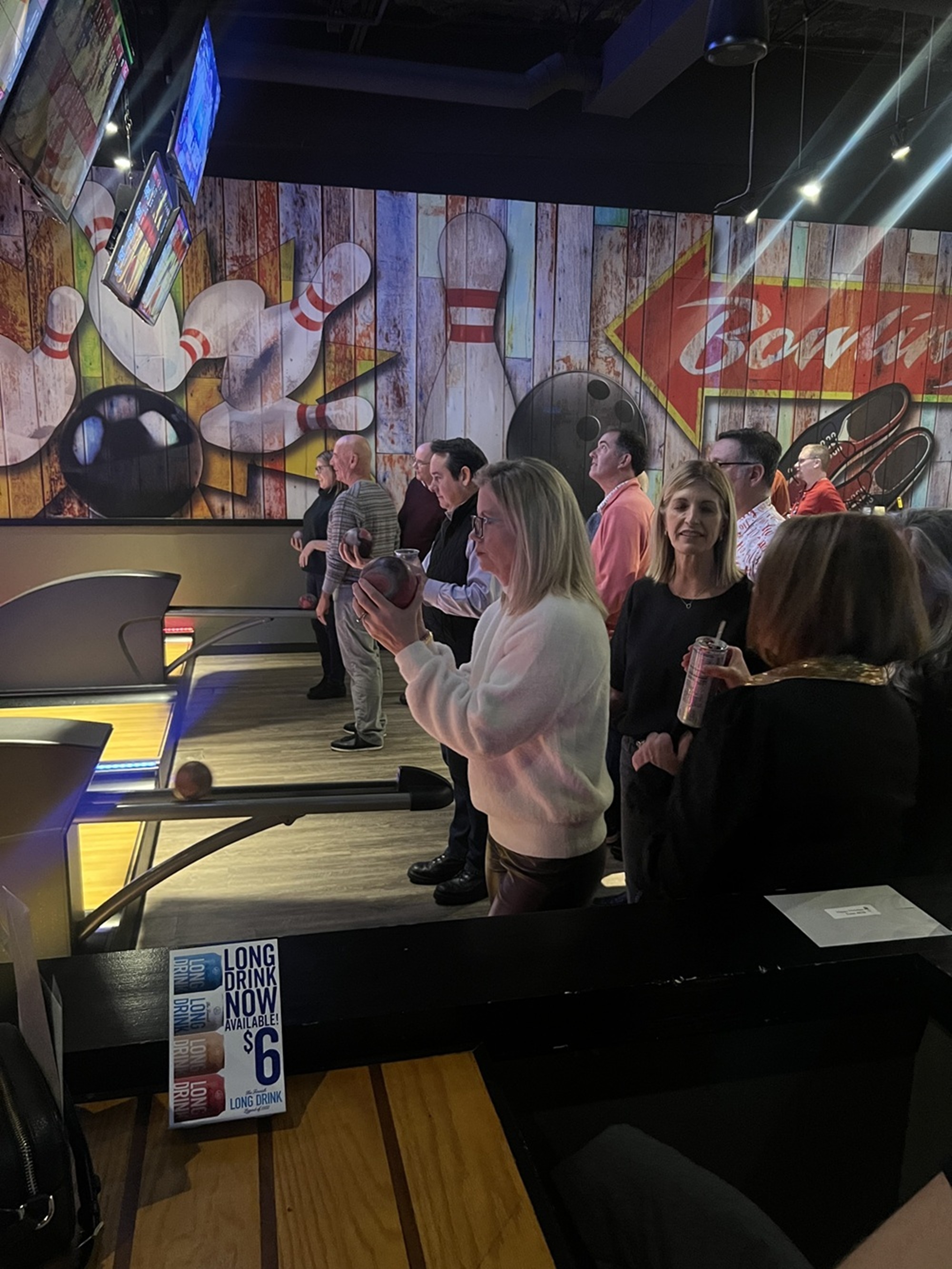 Employees enjoyed apps, cocktails, and dinner as well as virtual sports and Duckpin Bowling.